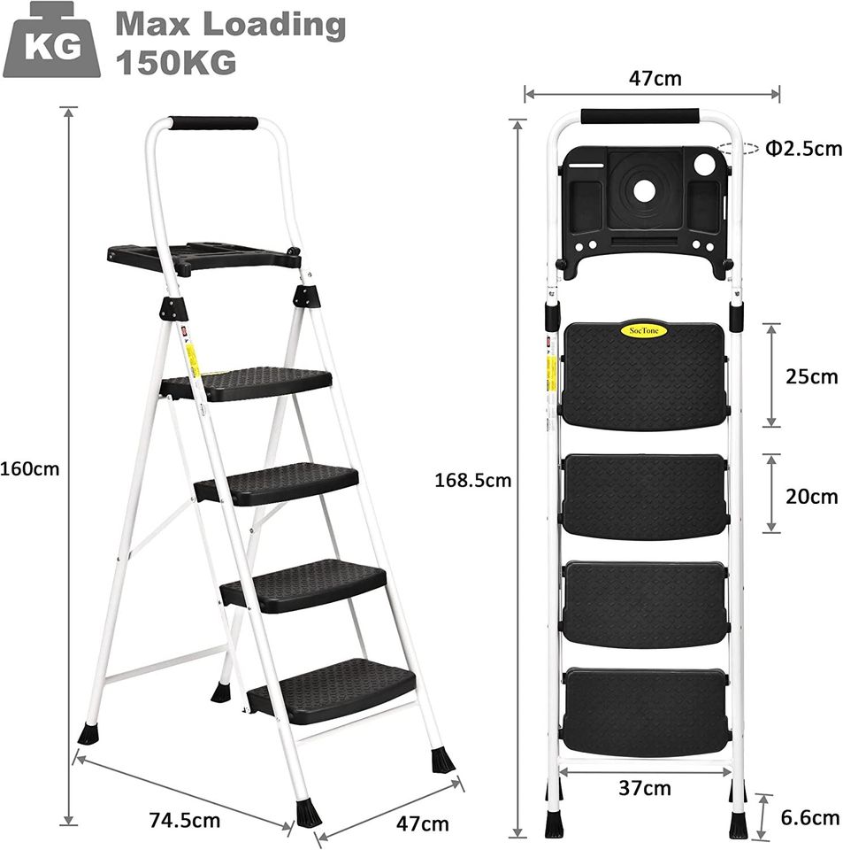 Escabeau 4 marches, pliant en acier avec pédale large antidérapante, charge max 150 KG.